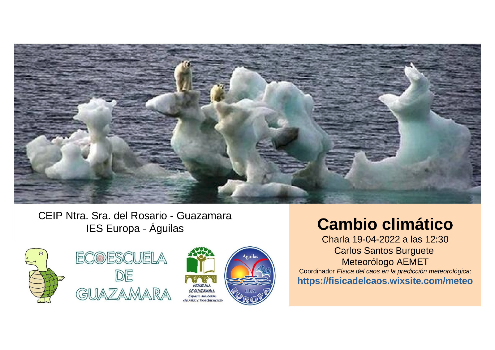 La charla forma parte de la unidad didáctica interdisciplinar Encender la luz sin apagar el planeta que se está desarrollando con el alumnado de 2º de ESO de la Ecoescuela de Guazamara y que, a su vez, se enmarca en la propuesta de Escuelas Andaluzas por el Clima para este curso: Sostengamos las renovables: lo pequeño es hermoso. Pero, dada la calidad del ponente, se ha compartido online con 1º de ESO, que desarrollará una unidad didáctica sobre la atmósfera. También se ha conectado a la charla online un centro de Águilas (Murcia), el IES Europa, que ha colaborado en la organización de la charla y que, como ecocentro, comparte nuestros objetivos. Concretamente han participado 5 unidades de 3º de ESO y el alumnado de Cultura Científica de 4º de ESO.